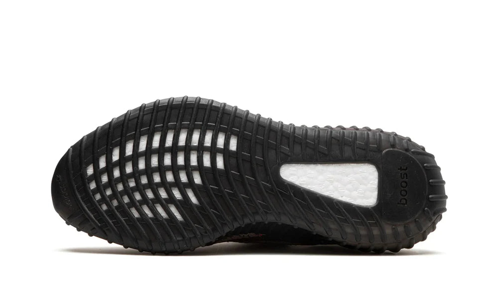 Adidas Yeezy Boost 350 V2 are un exterior din material Primeknit, cu dungi laterale din plasă și bucle din pânză la călcâi, iar la bază, o talpă cu tehnologie Boost completează designul.