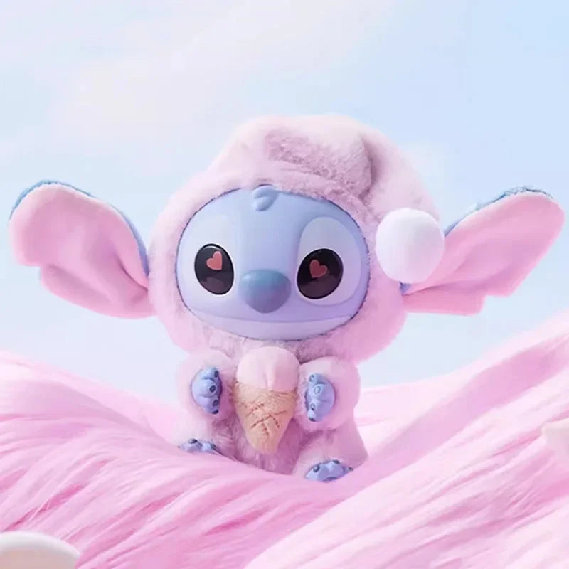 Miniso Top Toy Disney Stitch Eating Something Before Sleep transformă colecționarea într-o aventură: figurine expresive, design unic și entuziasmul fiecărei cutii surpriză.