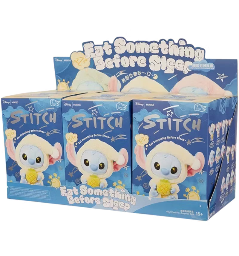 Miniso Top Toy Disney Stitch Eating Something Before Sleep Plush Keychain Single Blind Box