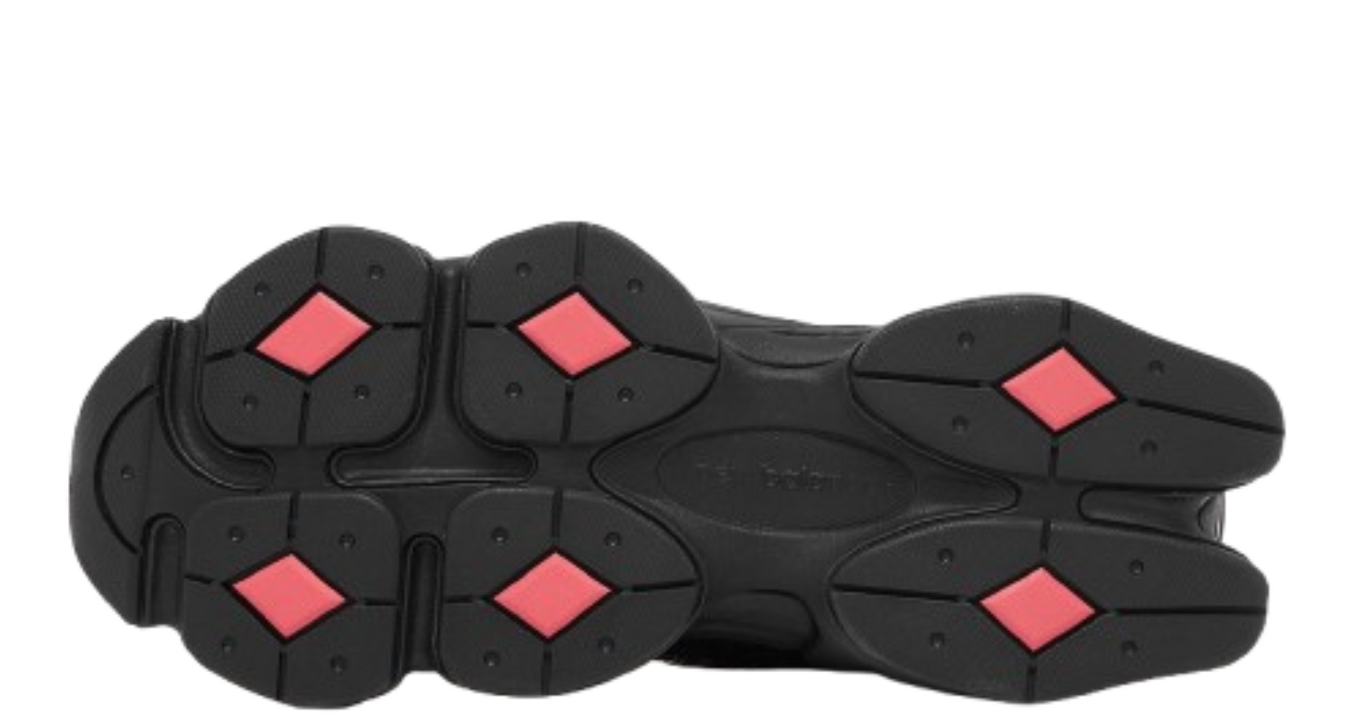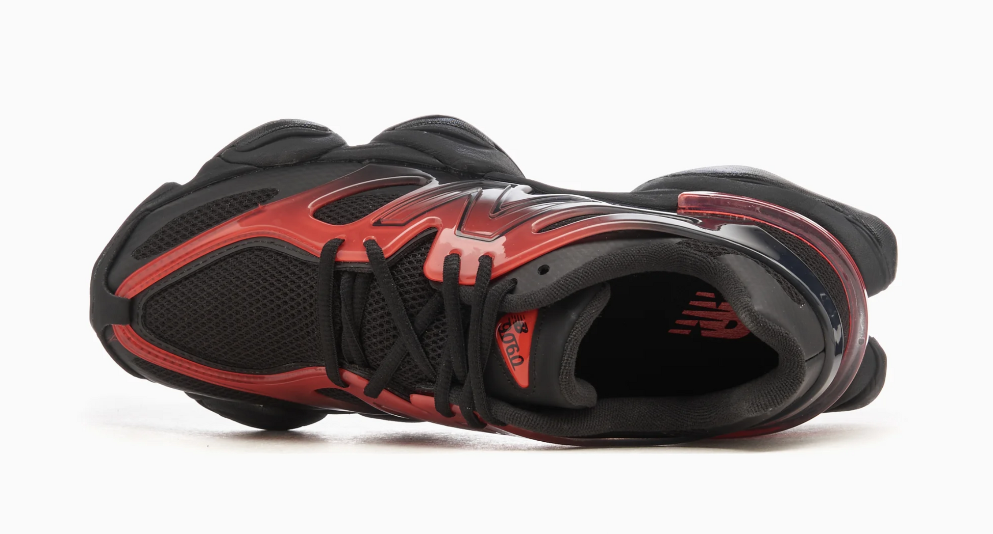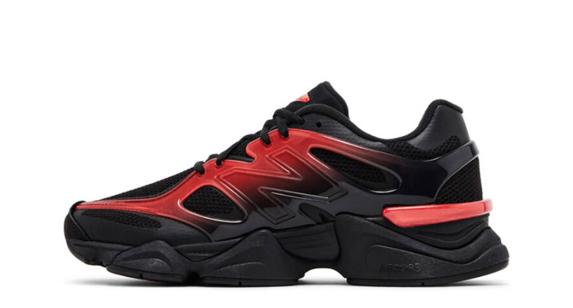 New Balance 9060 este inspirat din designul anilor ’90 și are o construcție din mesh și piele întoarsă. Include o limbă moale, șireturi plate și o talpă groasă cu amortizare ABZORB și SBS, plus un dispozitiv CR în zona călcâiului.