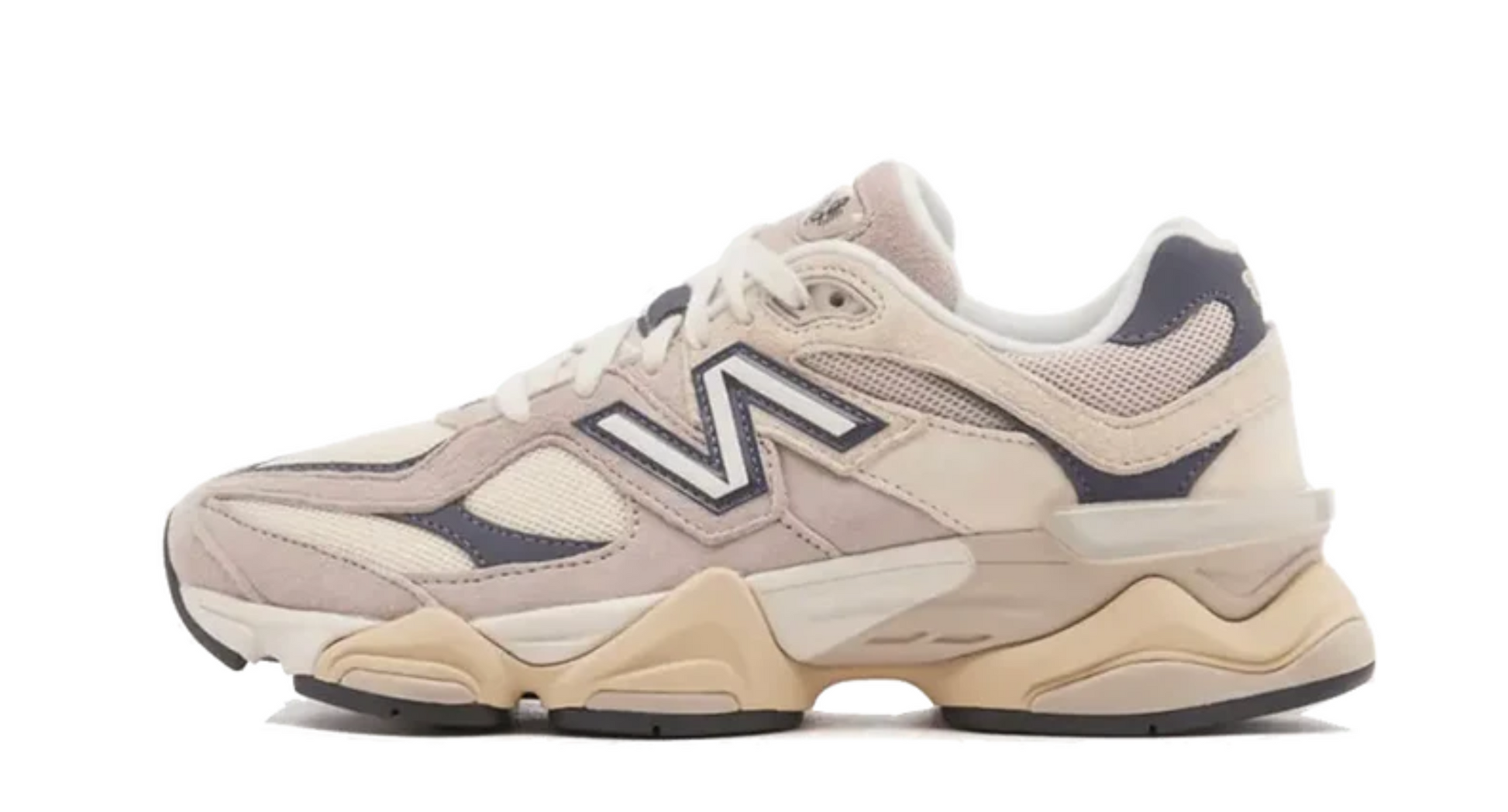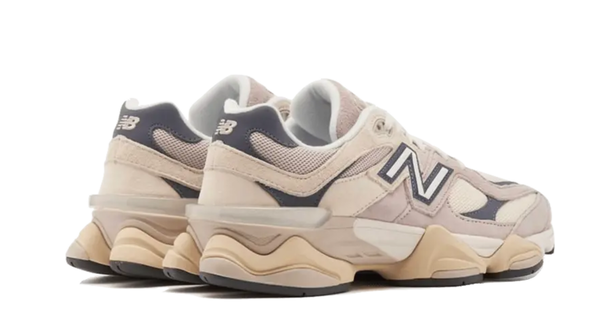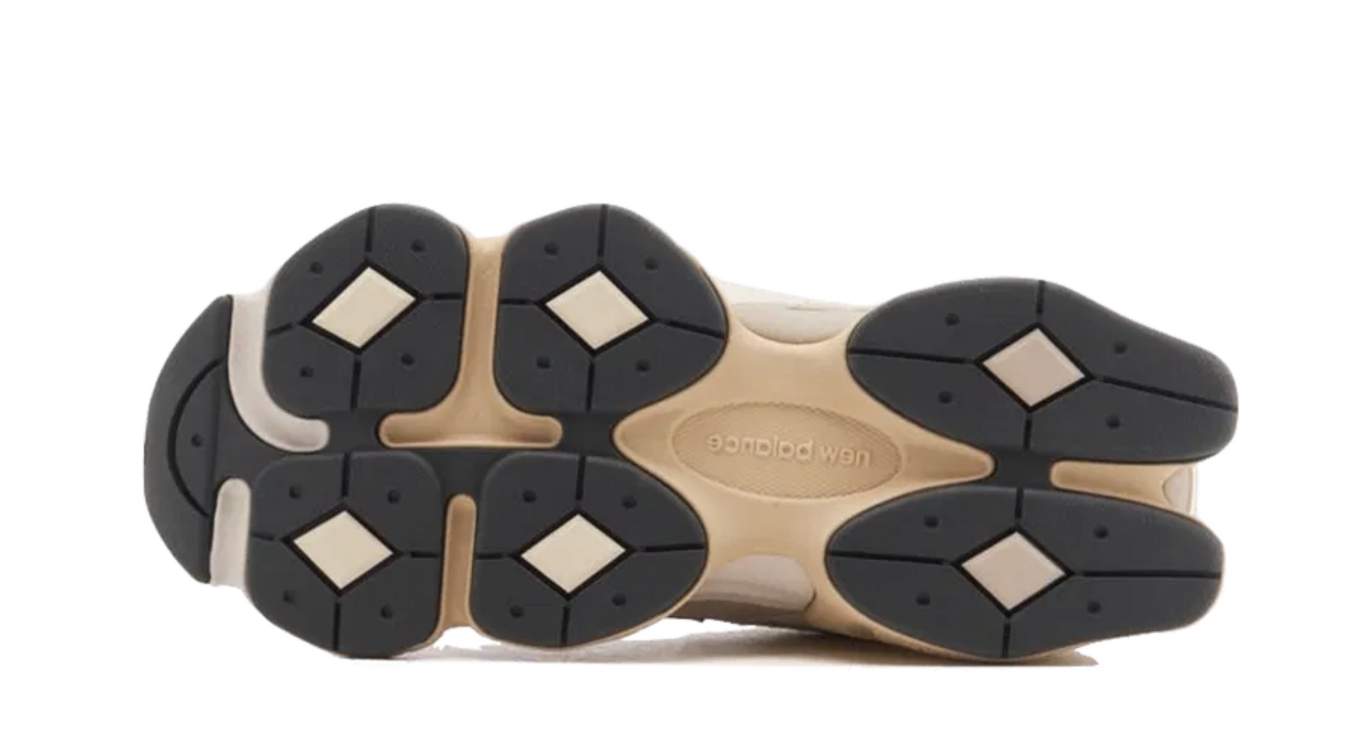 New Balance 9060 este inspirat din designul anilor ’90 și are o construcție din mesh și piele întoarsă. Include o limbă moale, șireturi plate și o talpă groasă cu amortizare ABZORB și SBS, plus un dispozitiv CR în zona călcâiului.