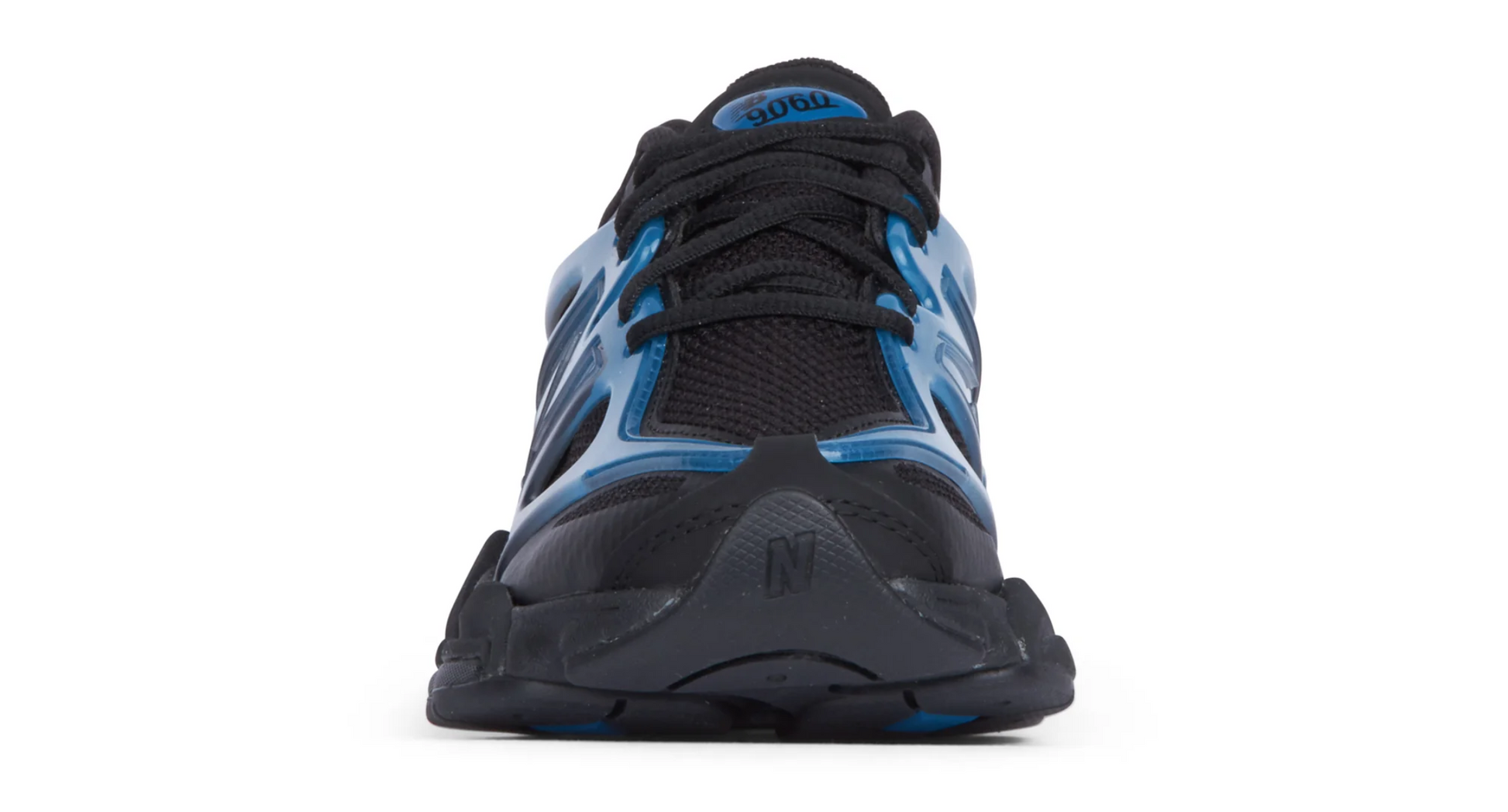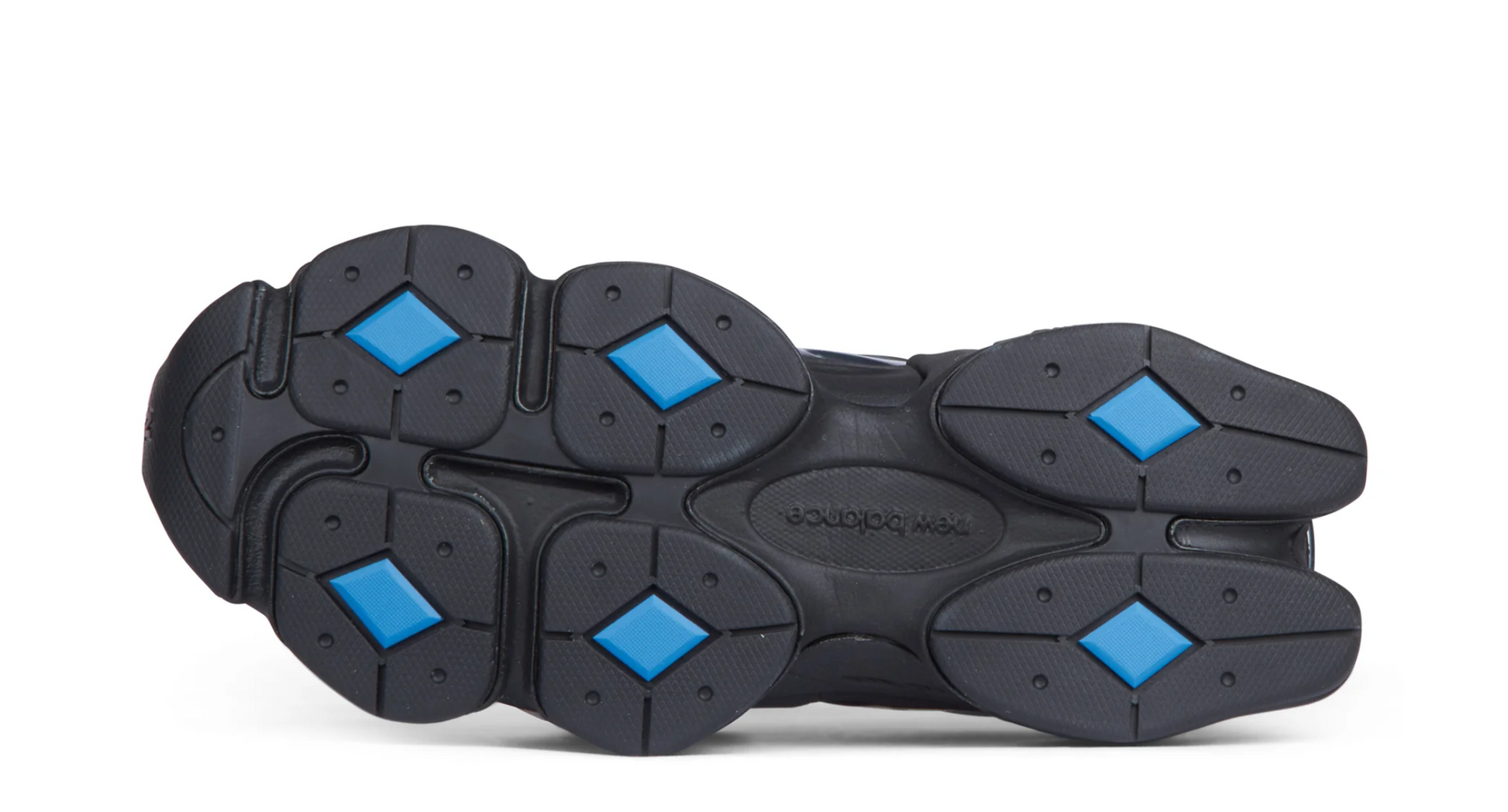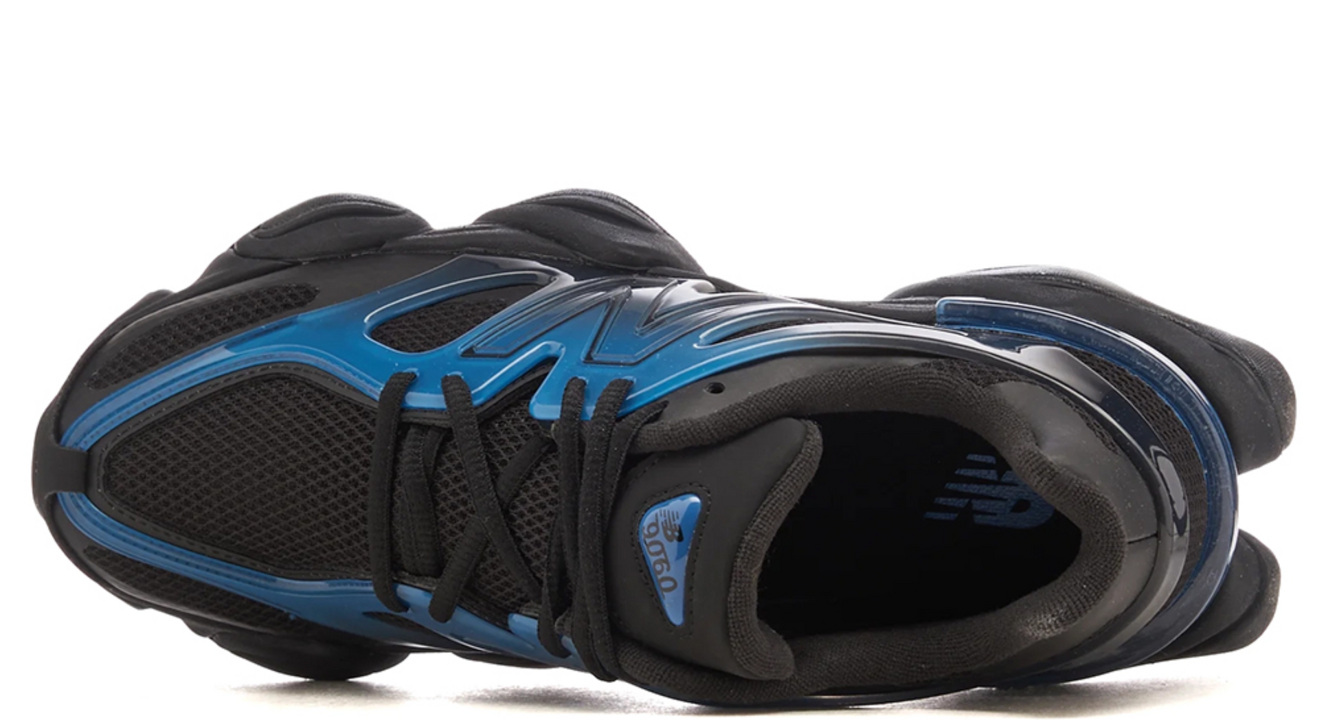 New Balance 9060 este inspirat din designul anilor ’90 și are o construcție din mesh și piele întoarsă. Include o limbă moale, șireturi plate și o talpă groasă cu amortizare ABZORB și SBS, plus un dispozitiv CR în zona călcâiului.