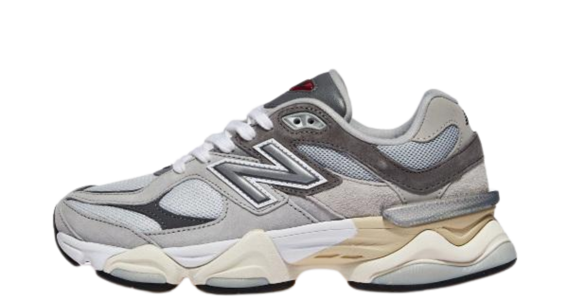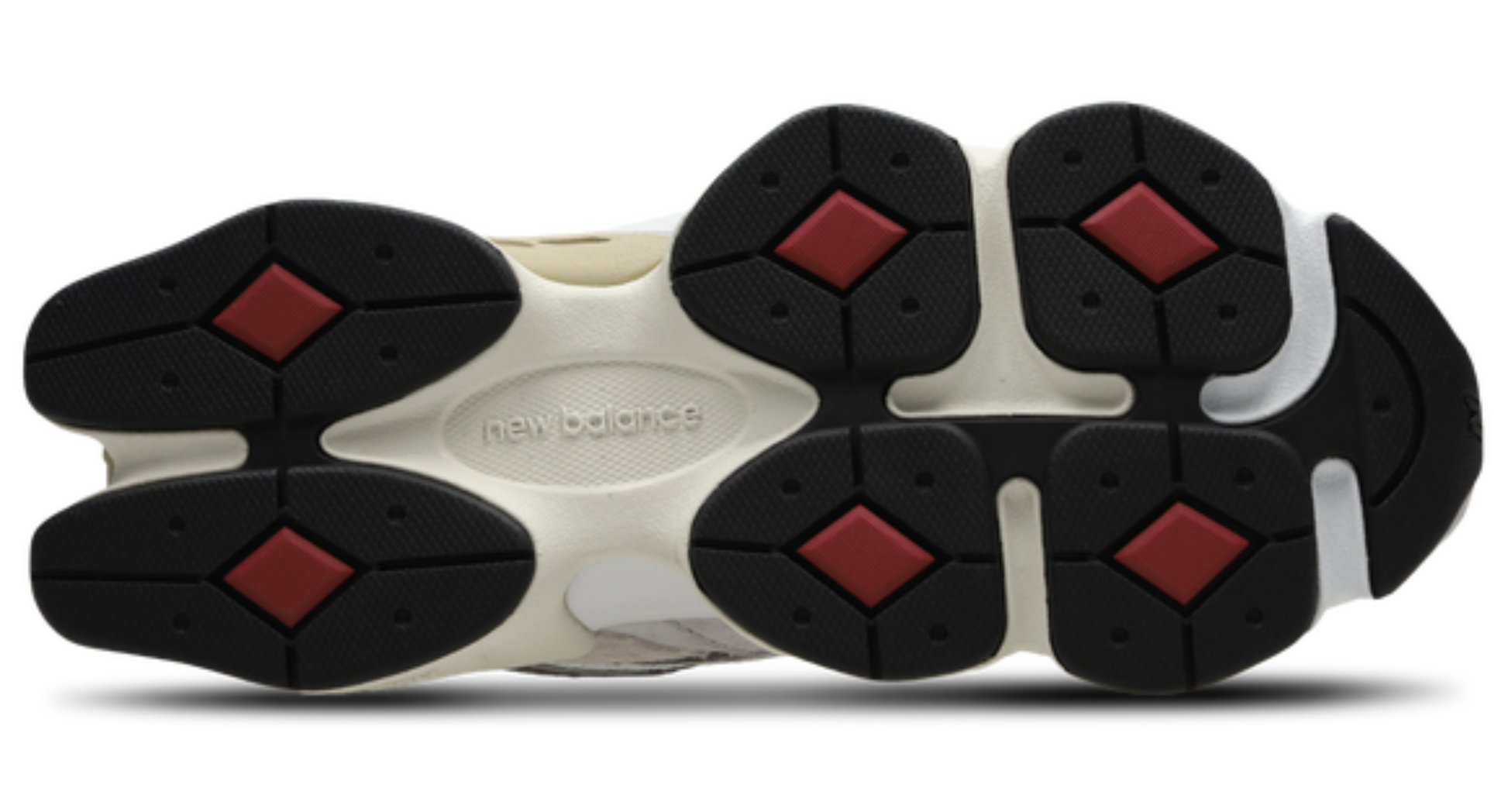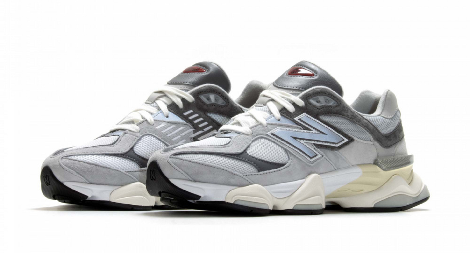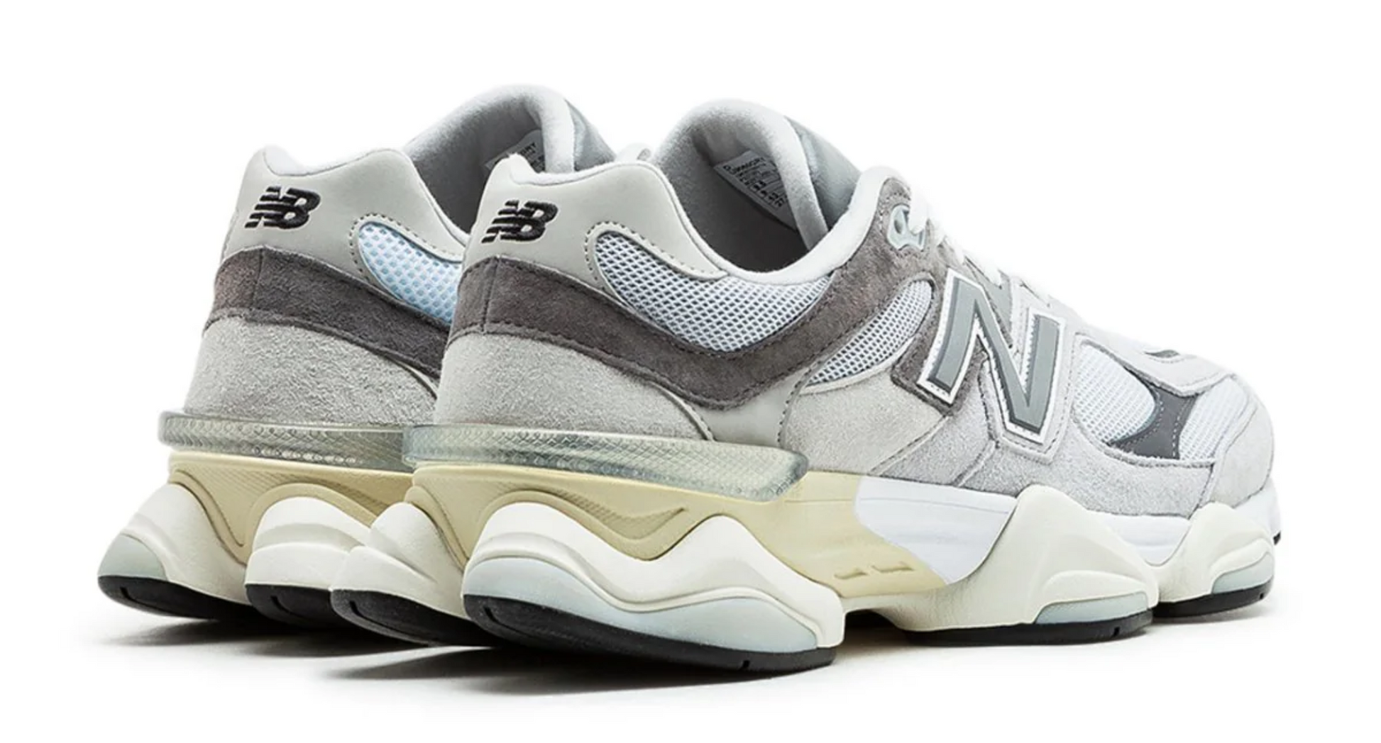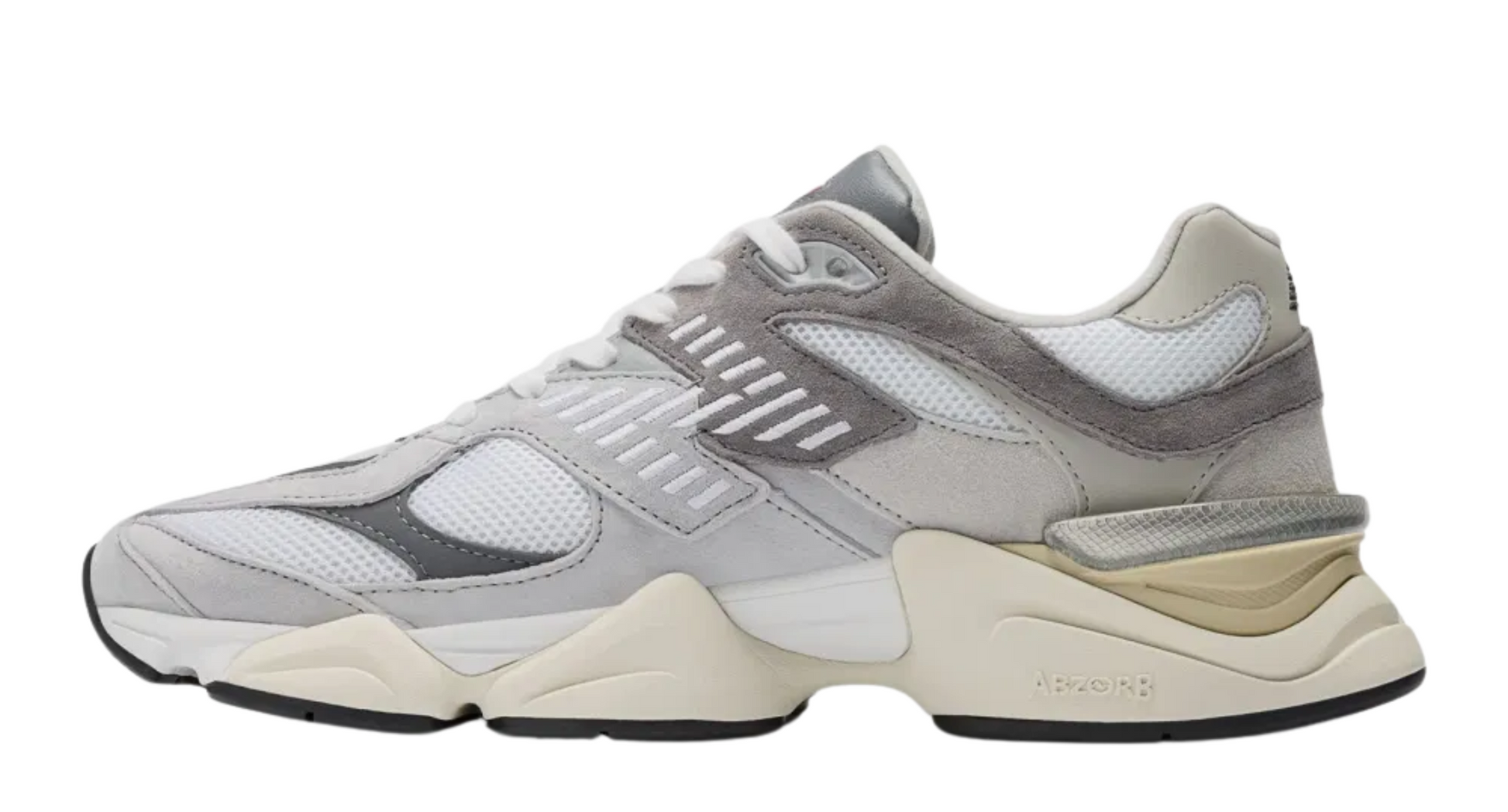 New Balance 9060 este inspirat din designul anilor ’90 și are o construcție din mesh și piele întoarsă. Include o limbă moale, șireturi plate și o talpă groasă cu amortizare ABZORB și SBS, plus un dispozitiv CR în zona călcâiului.