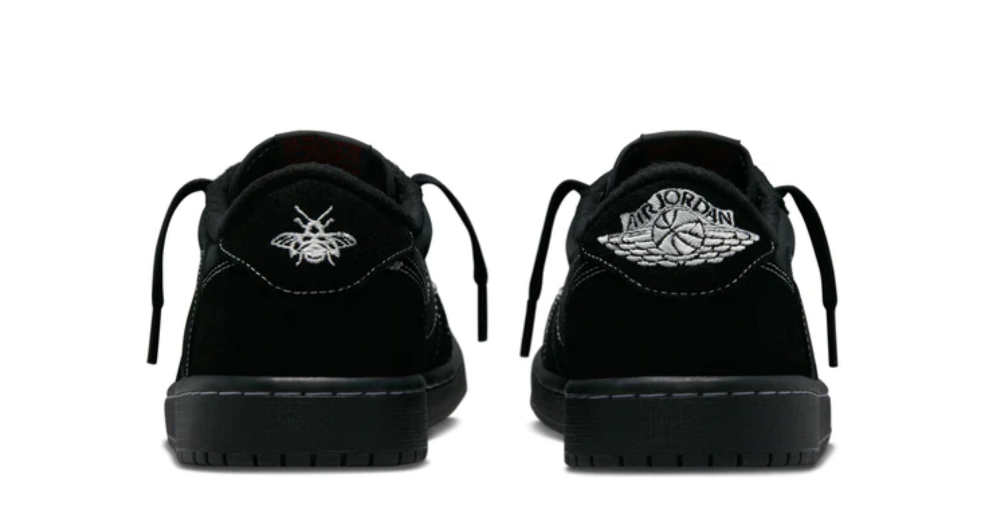 Travis Scott aduce înapoi Jordan 1 Low cu un nou design Black Phantom, cu Swoosh invers, cusături contrastante și detalii speciale precum albina brodată, inspirată de fiica sa. Construcție premium din nubuck și șireturi multiple incluse.