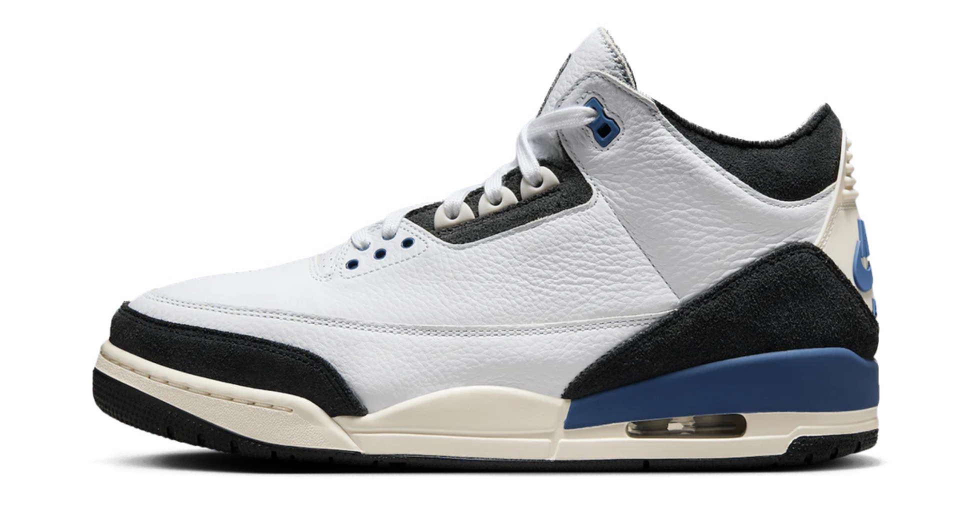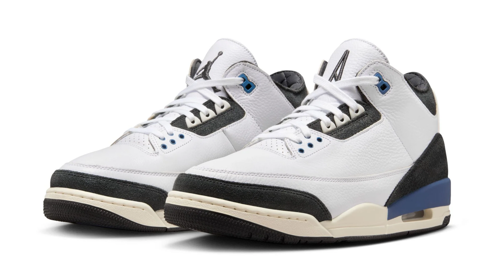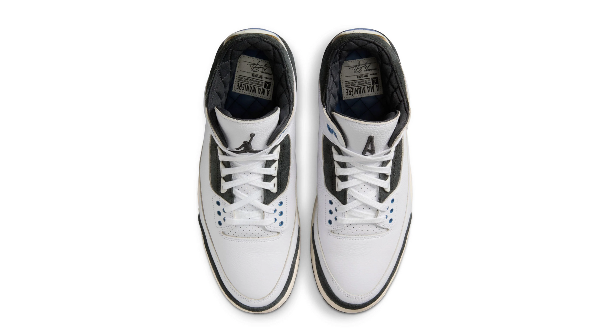Air Jordan 3 Retro OG SP A Ma Maniére celebrează în continuare acest parteneriat. Cu un design elegant în negru, alb și albastru, păstrează estetica luxoasă a brandului prin materiale premium și detalii rafinate. Parte din colecția „A Ma Maniére ”, menține standardul ridicat al modelului original A Ma Maniére AJ 3.