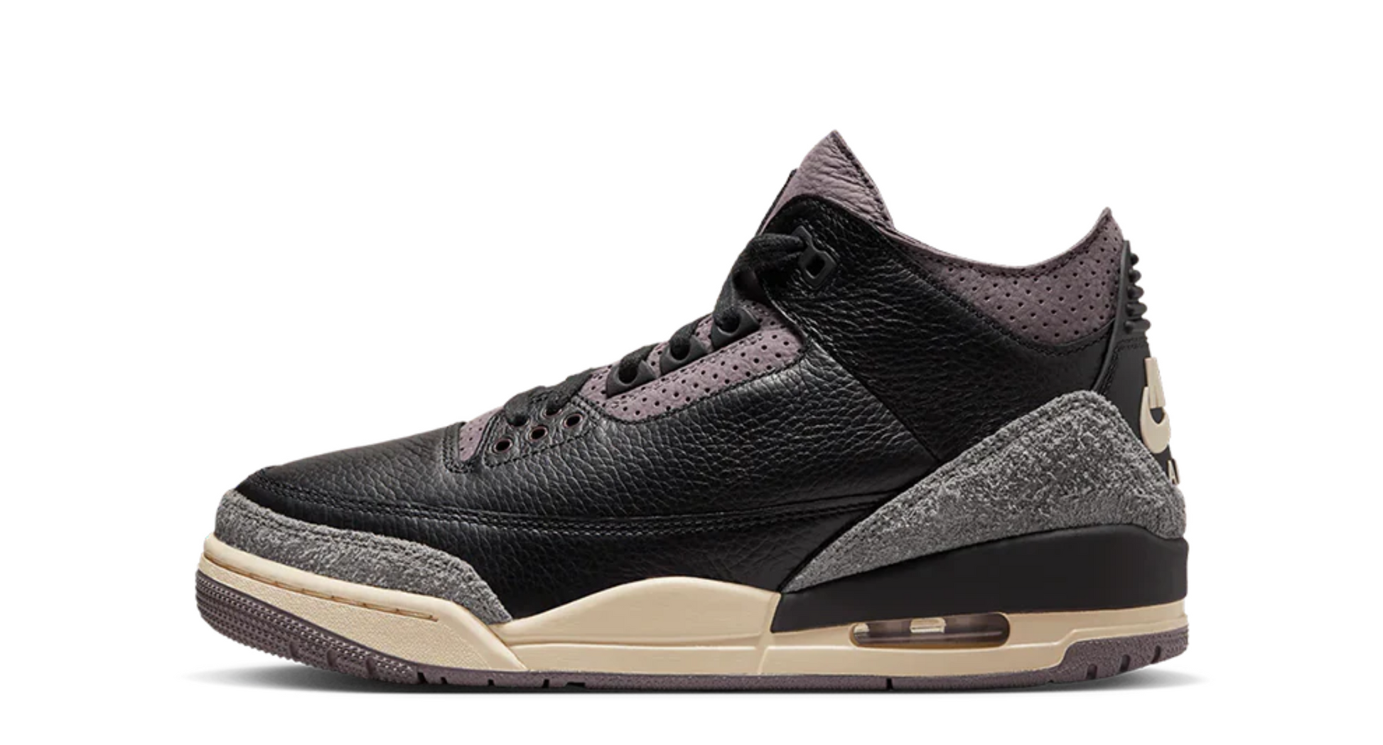 Air Jordan 3 Retro OG SP A Ma Maniére „While You Were Sleeping” celebrează în continuare acest parteneriat. Cu un design elegant în negru, violet și gri, păstrează estetica luxoasă a brandului prin materiale premium și detalii rafinate. Parte din colecția „While You Were Sleeping”, menține standardul ridicat al modelului original A Ma Maniére AJ 3.