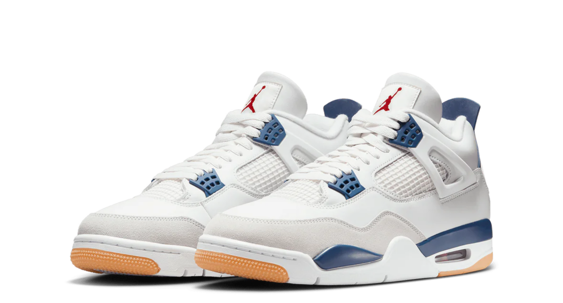 Jordan 4 Retro SB Navy combină stilul clasic Jordan cu detalii inspirate din skateboarding. După succesul modelului "Pine Green", versiunea de față vine cu accente navy elegante, piele summit white și detalii contrastante roșii. Logo-ul Nike SB de pe călcâi completează perfect look-ul cu vibe skate autentic.